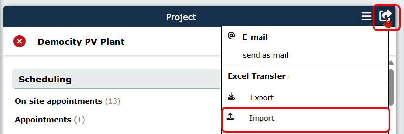 In the context menu that opens, select “Import” in the “Excel Transfer” section.