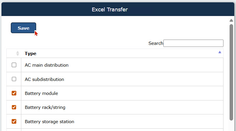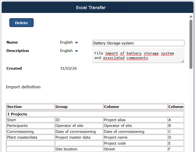 - new entries (inverters) are created (if IDs are filled in in Excel but do not yet exist in TabTool).