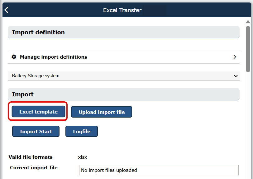 Using the “Excel template” button, you can download an empty file to populate with your import data.