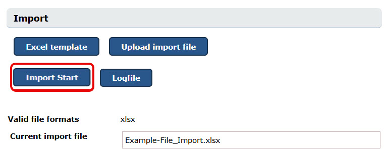 Uploading the import file and starting the import