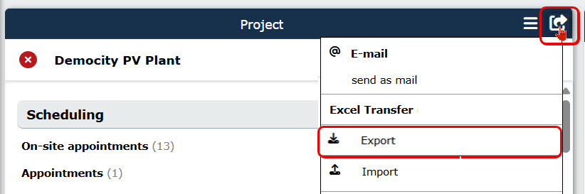 in the menu bar of your project file.In the context menu that opens, select “Export” in the “Excel Transfer” section.